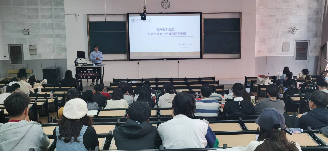 之后,新闻传播系教师王东林博士以《眼皮贴地皮:在学术研究中理解和建设中国》为题,带领大家学习贯彻习近平总书记有关在全党大兴调查研究之风的号召,王东林博士并结合自己的研究领域及自己的调研实践,向同学们介绍了调查研究的方法及心得。