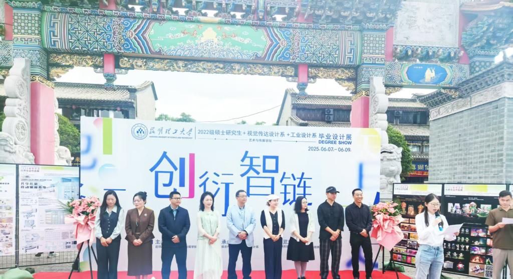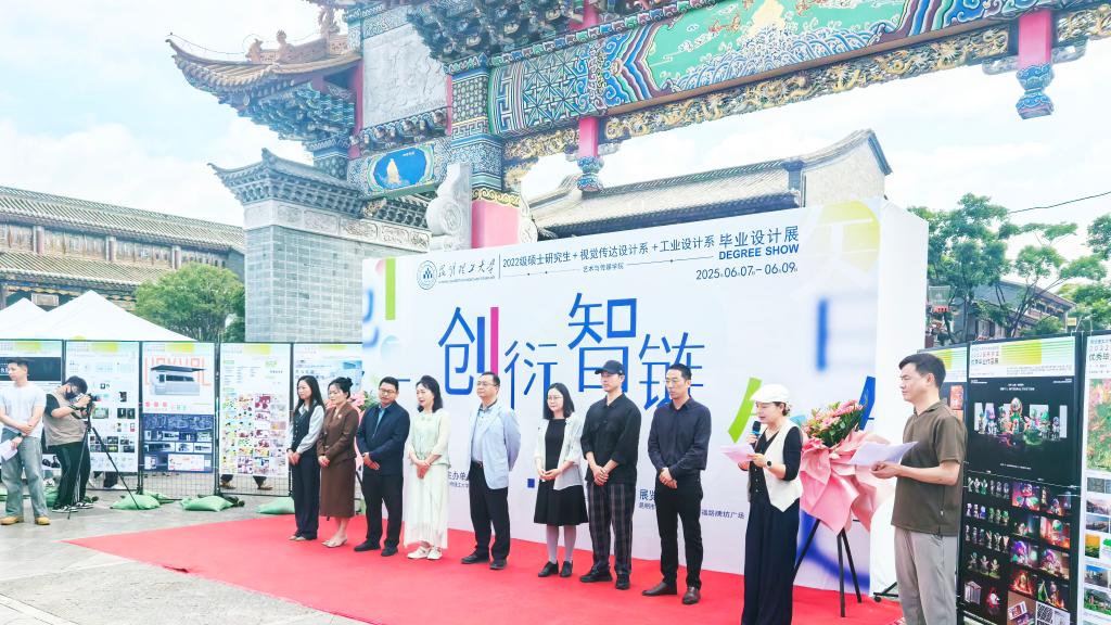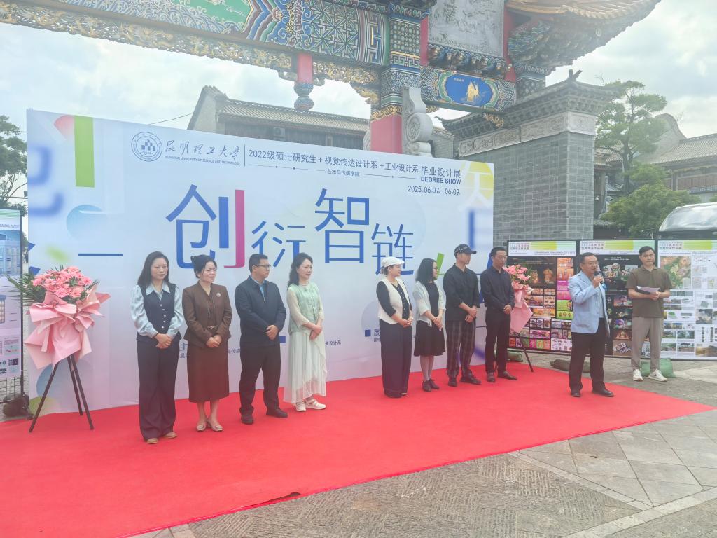 孙刚书记向毕业生提出祝贺,他强调,毕业设计是同学们在昆工学习生涯的重要里程碑,也是大家向社会展示专业素养与创新能力的关键窗口。这些作品,或扎根传统文化,挖掘民族艺术瑰宝;或拥抱前沿科技,探索设计新可能,不仅凝聚着个人的智慧与汗水,更体现了学院的教学理念与育人成效。”他希望大家始终牢记‘明德任责,致知力行’的校训,保持学习热情,不断提升自我,他强调,母校永远是大家坚强的后盾!孙刚书记宣布展览正式开幕。随后,滇戏博物馆非遗传承人张春丽团队带来的经典剧目《梨花颂》,悠扬的唱腔与现代设计的气息相互交织,为这场艺术盛宴拉开精彩序幕。