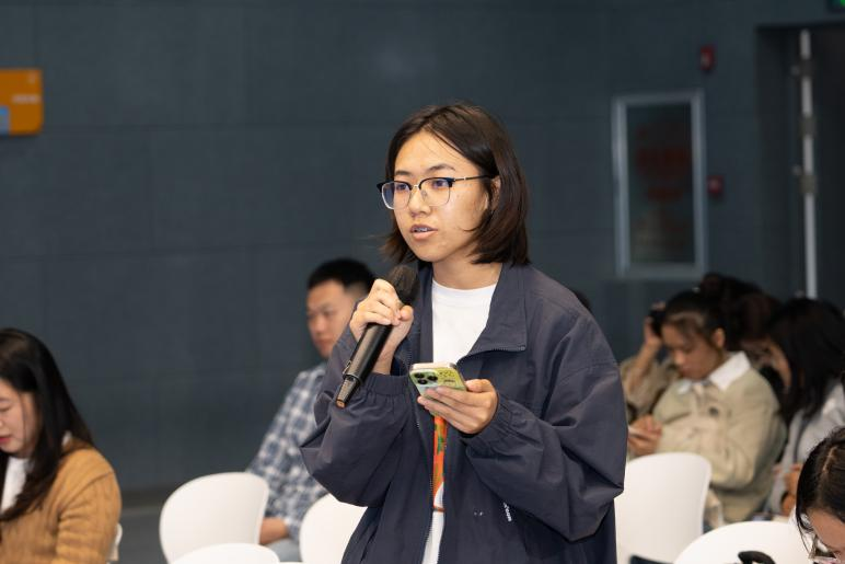 新闻与传播专业的赵泽瑞同学结合自己的毕业论文,提出了文化转译中“回归原著”与“创新吸引”的平衡问题,并询问游戏媒介在神话出海中的独特优势。黄悦教授指出,神话本身便是一首“变奏曲”,文化出海的第一步是“被看见”和“被喜欢”,应优先考虑通过多元化表达吸引海外受众,再引导其深入了解文化内核。她盛赞电子游戏是当前文化出海的“快船”,其强交互性能够在一定程度上打破意识形态的壁垒,让玩家在沉浸体验中接受文化内容。