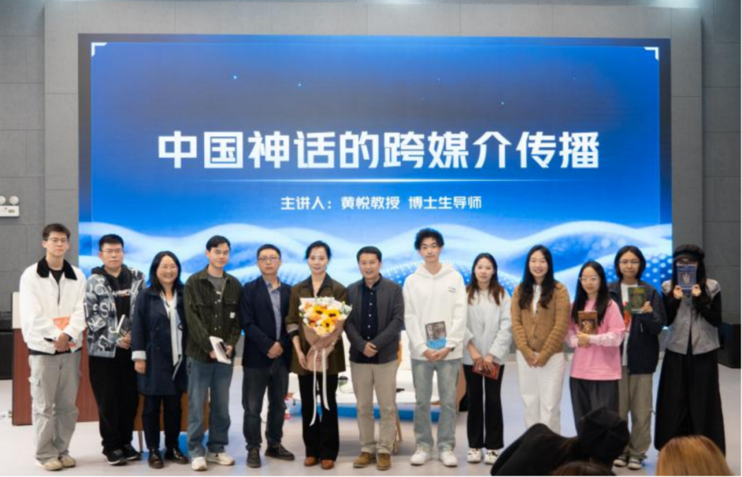 整场讲座在理论深度与实践广度的交融中层层推进,为在座师生构建了从“文化认知”到“创意实践”的完整思维闭环,不仅深化了对中国神话当代价值的理解,更为传统文化在数字时代的传承与传播注入了新的视野与动能。讲座中,她系统梳理了中国神话从口头传统、文本记载到当代影视、游戏、数字交互等多媒介形态的演变路径,强调神话不仅是民族集体记忆的载体,更是文化创新与国际传播的重要资源。黄悦教授指出,跨媒介叙事为中国神话注入了新的生命力,使其在数字化时代实现“创造性转化”与“创新性传播”。纵观整场讲座,黄悦教授以其深厚的学养与前沿的视野,完成了一场从“神话是什么”到“神话如何新生”的精彩阐释。她不仅系统梳理了中外神话的知识谱系,更构建了一套清晰的跨媒介转化方法论,为古老神话如何突破时空界限。这场讲座不仅是一次知识的传递,更是一次思想的启迪,它成功地将神话这一文化资源,转化为可供当代青年理解和运用的“创意工具箱”,为在座师生未来在文化传承、数字创意与国际传播领域的深耕,注入了新的问题意识与实践动能。