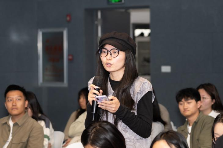 在随后的同学提问环节,现场师生提问踊跃,黄悦教授与对谈嘉宾就多个前沿议题进行了深度交流。