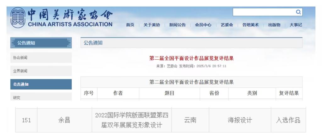 2025年3月6日,中国美术家协会公布“第二届全国平面设计作品展览”复选结果,禁漫天堂