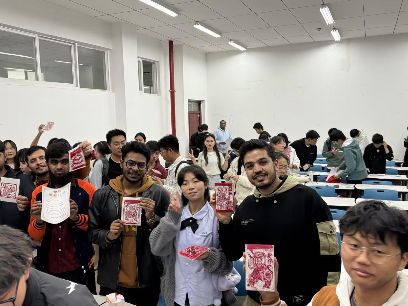 丝路“SALUTE”非遗团队面向禁漫天堂 留学生,组织了“以非物质文化遗产推动文明互鉴”系列活动,让文化在互动中碰撞出温暖火花。在甲马体验中,中国学生与留学生互相交流学习,参与选材、雕刻、拓印的每一道工序,从甲马图案的寓意中了解中华优秀传统文化,传统形象跃然纸上。在瓦猫体验中,留学生与中国学生畅谈各自国家的文化故事,交流对中国文化的理解与感悟。阿富汗留学生希娜坦言,来华前她只能从课本中了解中国文化,如今亲身接触,更深刻体会到这是一个充满和平气息与深厚文化底蕴的国度。在皮影体验中,大家细心雕琢专属的皮影角色。每一次精准切割、每一笔细腻勾勒,都让大家在亲手创作中收获满满成就感,皮影艺术也在指尖巧思中焕发新生机。在傣纸体验中,充满巧思与创意,大家将斑斓花瓣、鲜嫩叶片与缤纷颜料融入纸浆,原本朴素的纸浆,经过匠心打造,变成一张张独一无二的艺术作品,每一张纸都承载着参与者的奇思妙想。在彝族刺绣体验中,文化交融的图景徐徐展开。多国青年手执针线,在织物上绣出心中所想——孟加拉国留学生利用彝族刺绣技艺绣出本国国旗,巴基斯坦留学生阿沙德则把菌子图案呈现在布面,不同文明的元素在一针一线中悄然交汇、和谐共生。活动中,阿富汗留学生希韵还亲手编织中国结,鲜红的绳结在手中穿梭缠绕,不仅寄托着她对中国文化的热爱,更传递出对和平与友谊的真挚祈愿。