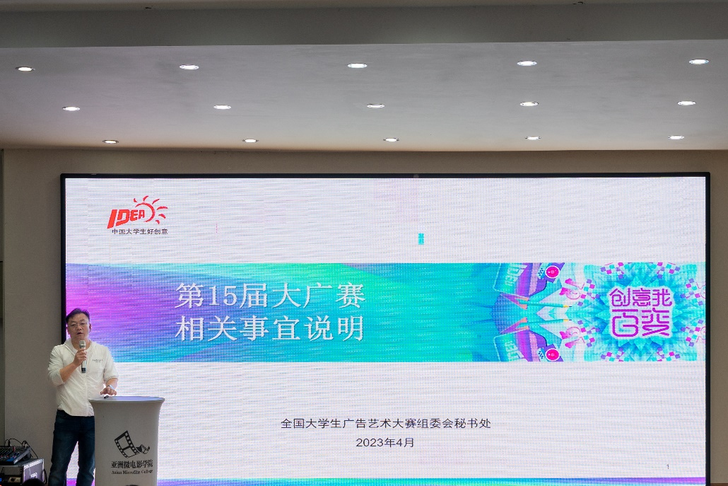 出席本次会议的嘉宾、老师依次上台致辞,对学生们的作品创意表达出期许与鼓励,李怀苍老师对大广赛的相关事宜进行了详细的说明,并提醒参赛师生注意参赛作品网上提交截止日期为6月15日下午16:00,确保参赛者作品能够成功参赛。