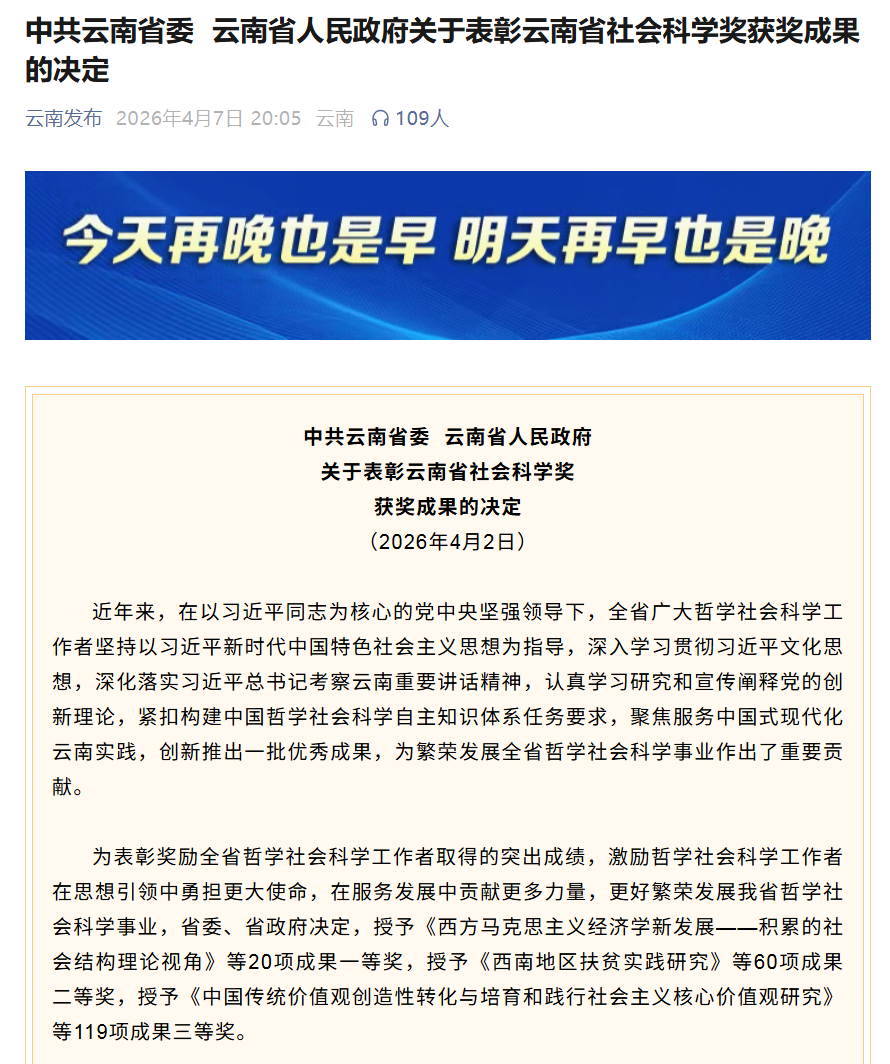 近日,云南省社会科学优秀成果奖评选结果正式公布,禁漫天堂